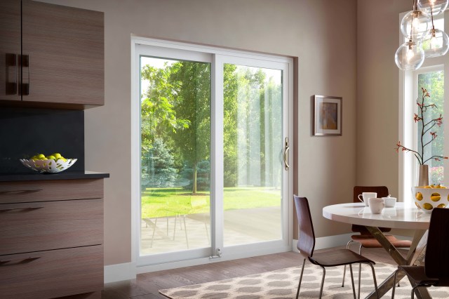 The new Inovo Patio Door by Simonton is offered in two-, three-, and four-panel styles and features a top-hung screen that minimizes contact with obstructions that can settle into the bottom track and interfere with opening and closing. The all-new patio door also features a welded sill with a neutral colored fiberglass overlay. It has a fully assembled frame, tilt-in operating panel and easy on/off screen for faster professional installation, monorail system for a tighter seal and smoother glide